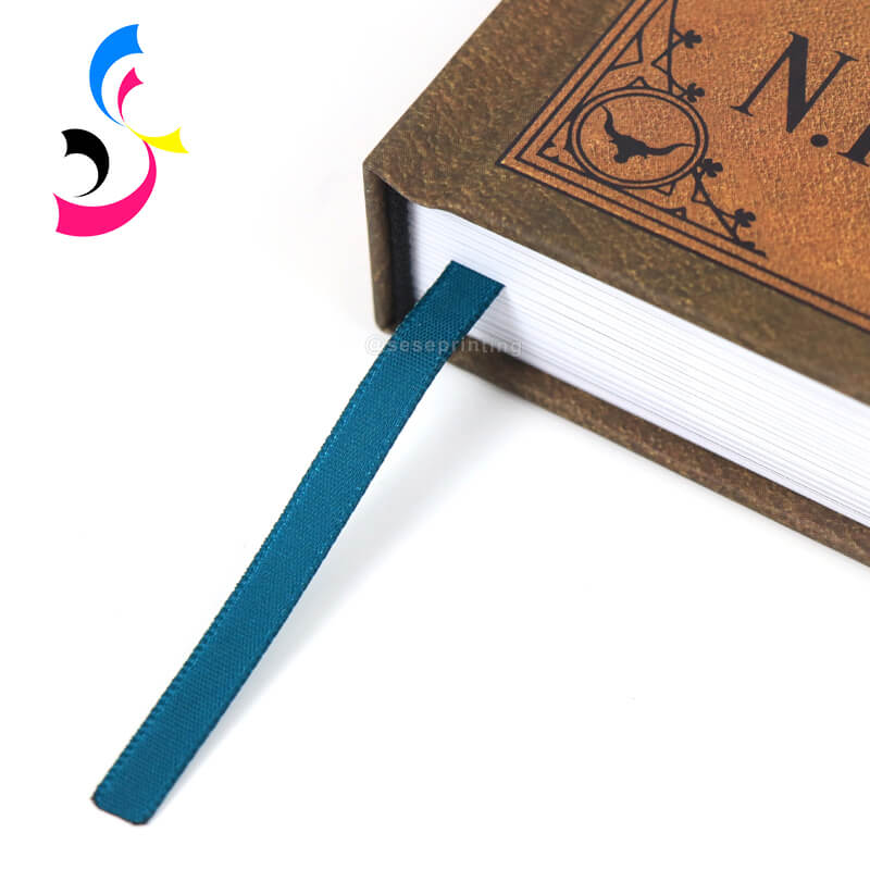 Ribbon Marker (Optional): A woven ribbon bookmark sewn into the spine of the text block at the top.